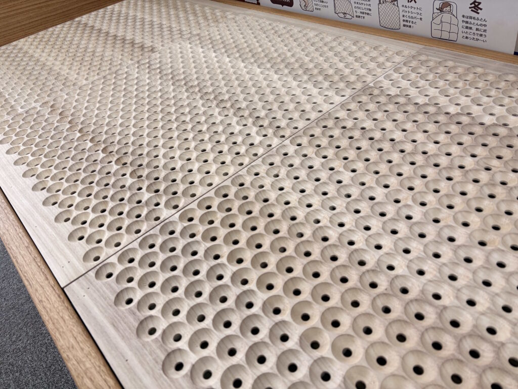 あっ、それから少しだけ。 当店が大事にしているのは、床板の通気性です。 湿気は下に落ちていくので、ここに風が通るだけで、寝具まわりのトラブルがぐっと減るんですよ。